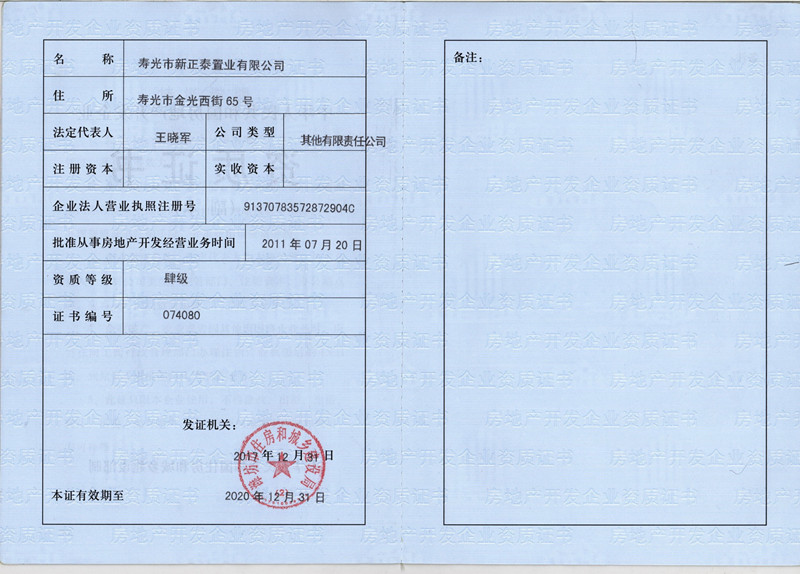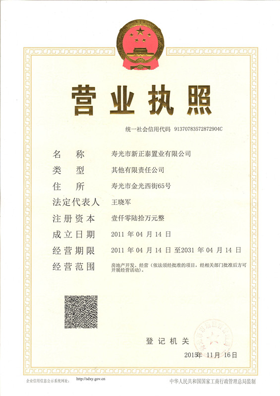 壽光市新正泰置業(yè)有限公司企業(yè)資信