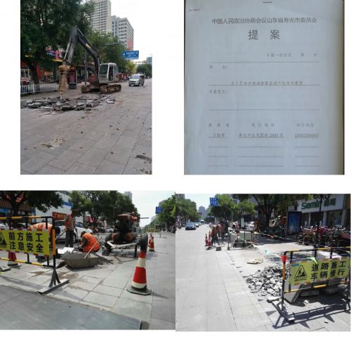 2004年,壽光市對渤海路進行了高標(biāo)準(zhǔn)改造,將渤海路中段改建成集休閑、娛樂、購物、交通于一體的現(xiàn)代化商業(yè)步行街。但之前因服役時間長,渤海路損壞嚴(yán)重,連年“縫縫補補”不斷,影響了市民生活和出行,也制約著周圍商業(yè)的發(fā)展。多年來,擁有“政協(xié)委員”和“修路人”雙重身份的王曉軍,持續(xù)關(guān)注著這一問題,并于2018年完成了《關(guān)于盡快對渤海路路面進行改造的提案》,令他高興地是,這一提案很快通過并實施。2018年10月9日,渤海路改造升級工程由市政公司競標(biāo)成功,在王曉軍帶隊下,渤海路開始了“精雕細(xì)琢”的“變身”。