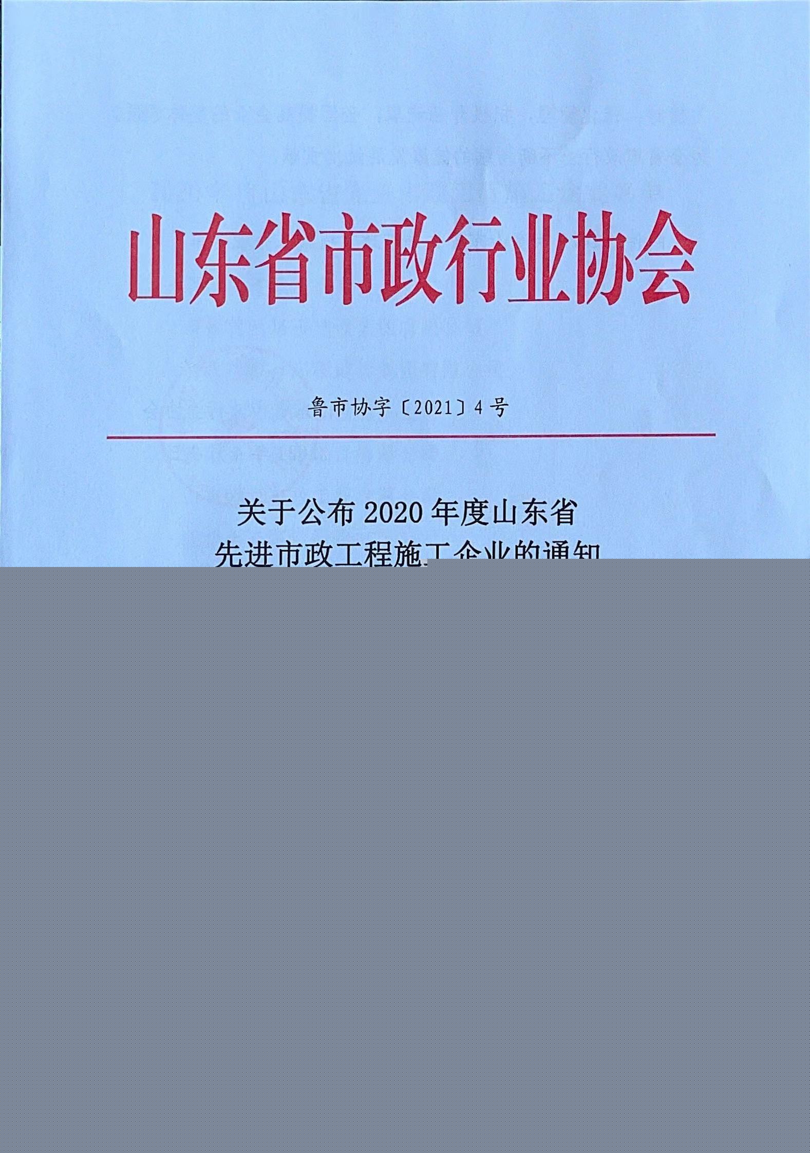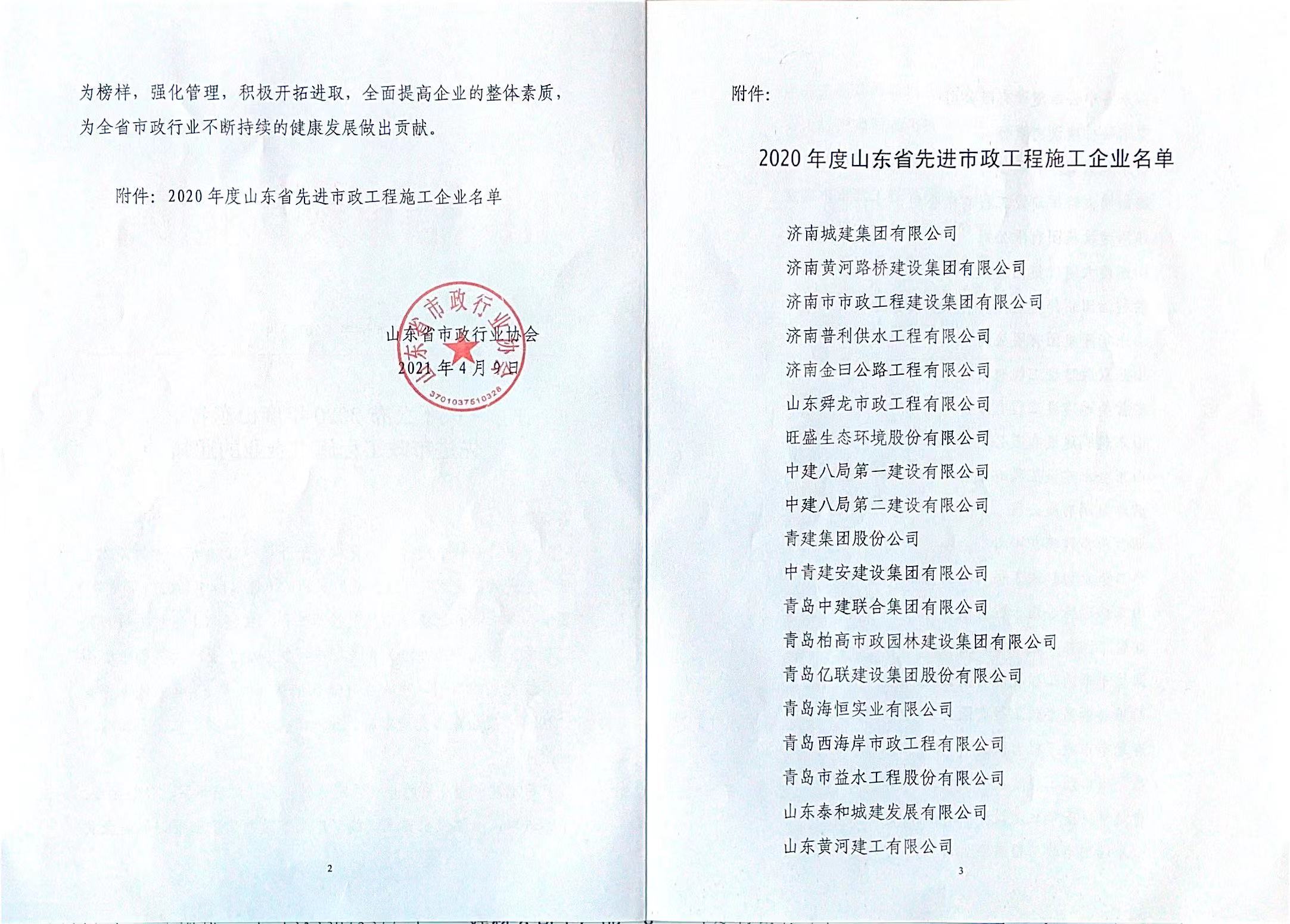 公司被評(píng)為“山東省**市政工程施工企業(yè)”